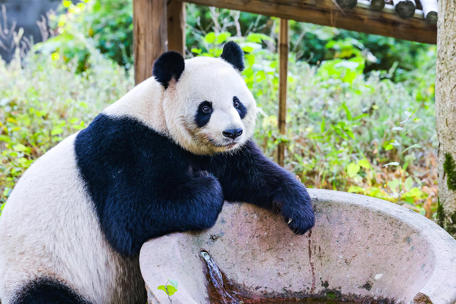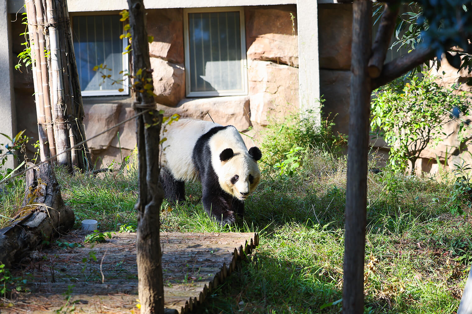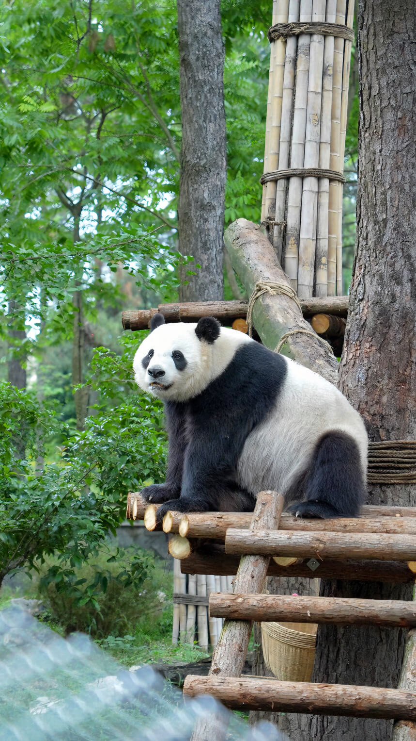 安吉大熊貓館是目前世界一流的大熊貓專業(yè)生態(tài)展館,整個(gè)熊貓館面積大約3400平方米,硬件投資400多萬(wàn)元。大熊貓住的地方是嚴(yán)格按照專家建議設(shè)計(jì)建造的,其中各項(xiàng)功能齊全。比如,大熊貓怕熱不怕冷,80平方米的室內(nèi)館就設(shè)置成了恒溫室,室外氣溫一旦超過(guò)26攝氏度,它們就要進(jìn)去享受空調(diào)了。此外,大熊貓喜歡爬樹(shù),偶爾也要玩玩游戲,兩個(gè)500多平方米的室外館安裝了樹(shù)架、游樂(lè)設(shè)施,專供它們健身悠閑之用。